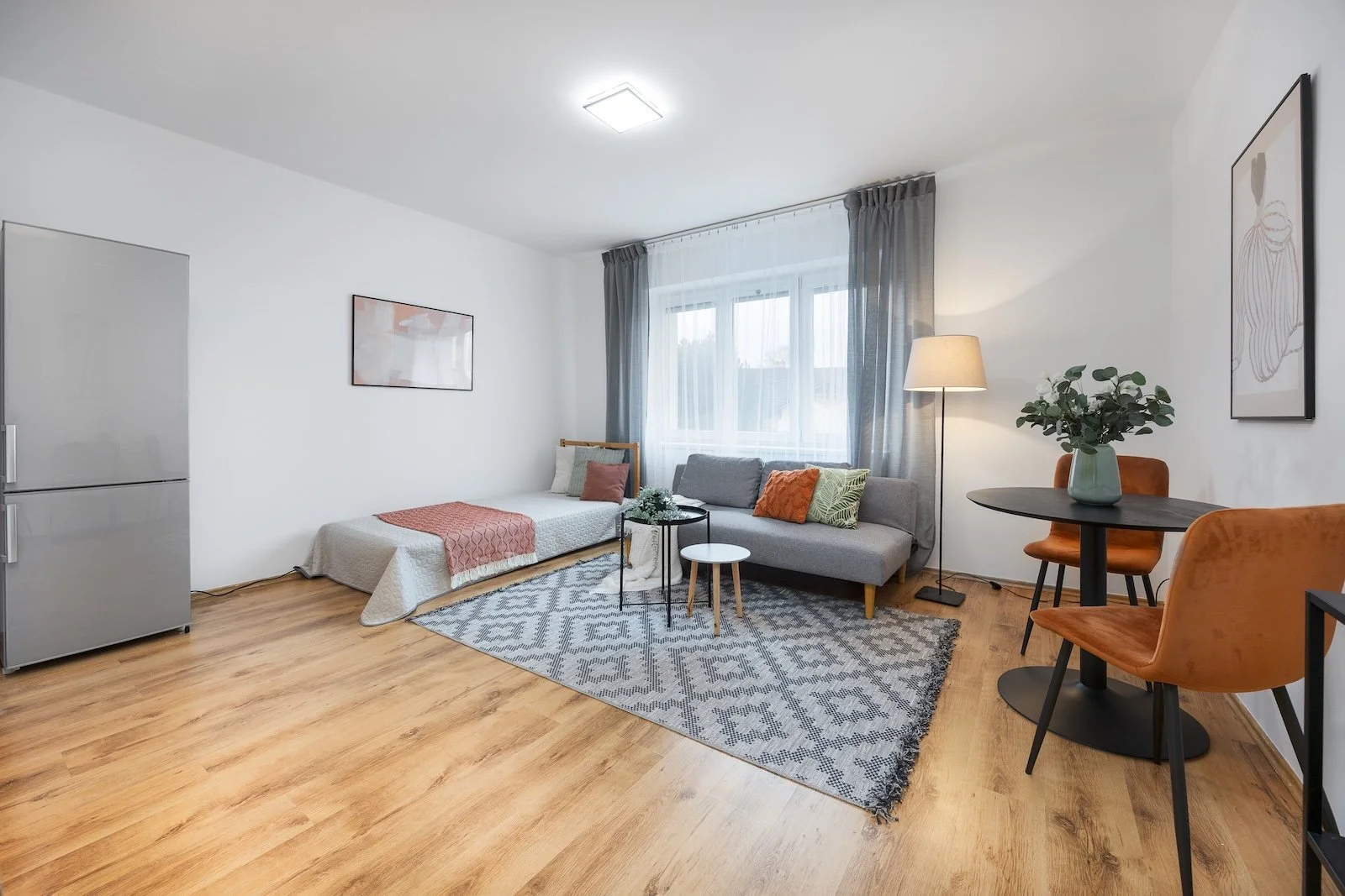 Unhošť v sobě spojuje výhody maloměsta s těsným kontaktem s přírodou. Byt těží z vynikající polohy – dům se nachází v zástavbě, která kombinuje klid a soukromí s pěší dostupností všeho podstatného. Jen pár minut chůze vás dělí od naučných stezek, rybníků a rozsáhlých lesů, které jsou ideální pro cykloturistiku, běh nebo procházky se psem. Město disponuje kompletní infrastrukturou – mateřská a základní škola, supermarkety (Penny, Lidl), řeznictví, lékárny, poštu a bankomaty. Ve volném čase můžete využít sportovní halu, fotbalové hřiště, tenisové kurty a několik vyhlášených restaurací a cukráren přímo na náměstí.