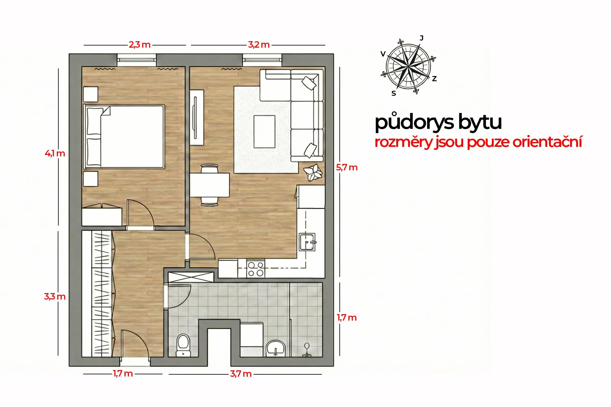 Ideální dispozice pro startovací bydlení nebo k následnému pronájmu.