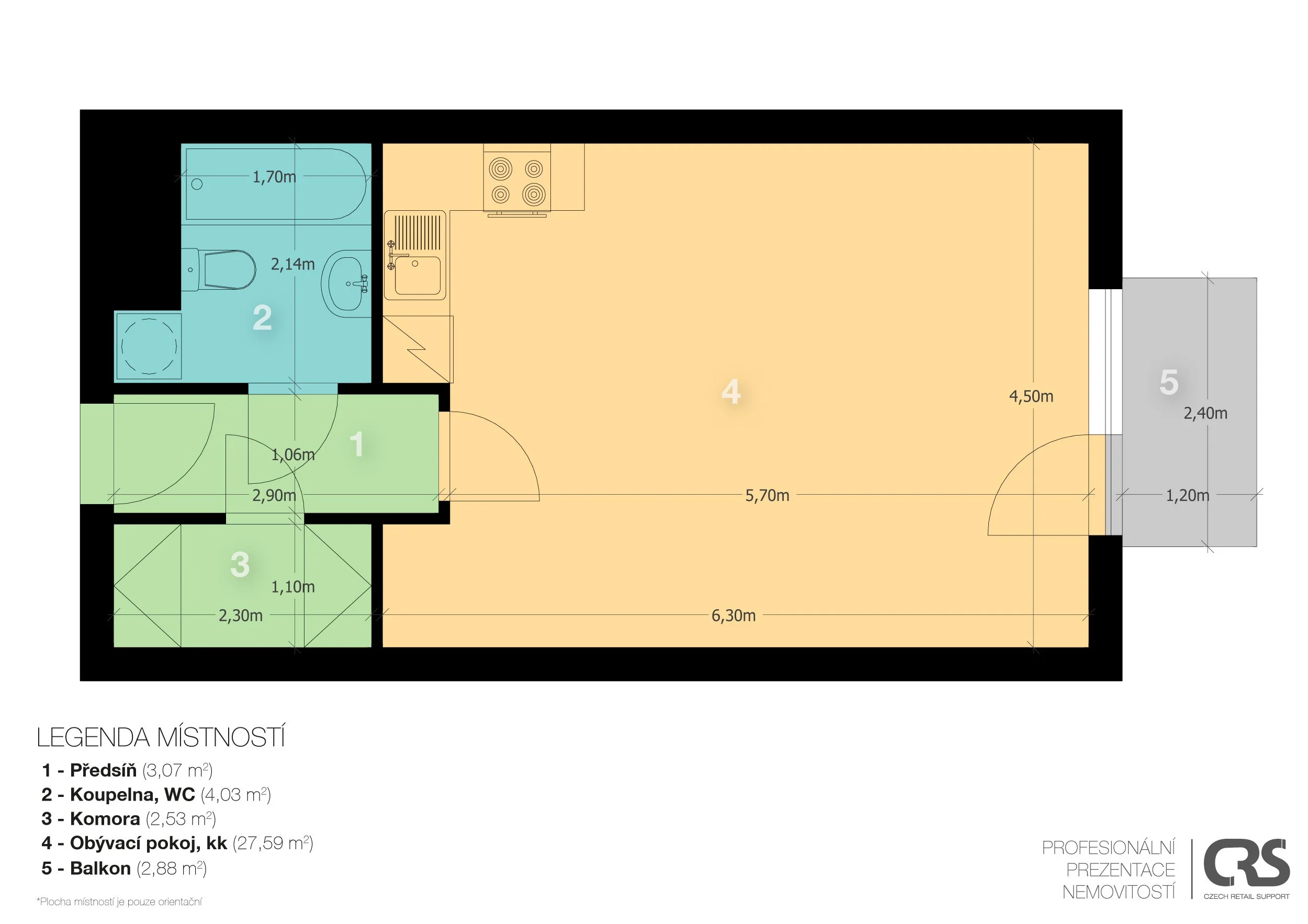Nabízíme Vám ke koupi bytovou jednotku ve vynikajícím stavu o celkové užitné ploše 37,49 m2 + balkon 5,79 m2 + sklepní kóje 3,61 m2 (výměry dle prohlášení vlastníka) s výhledem jih do parčíku. Byt, nacházející se v 2 nadzemním podlaží skeletového domu, se skládá z obývacího pokoje s kuchyňským koutem, praktické komory, koupelny s toaletou a chodby. Vstup na balkon je pak možný přímo z obývacího pokoje.