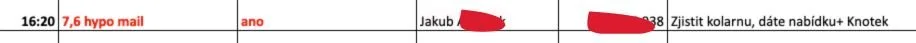 Výstřižek z tabulky, kam si uvádím nabídky od zájemců